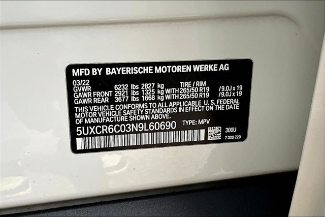 This 2022 BMW X5 comes equipped with, Leather Seats, Sunroof/Moonroof, Navigation System, Backup Camera, Bluetooth, Apple CarPlay, Android Auto, NonSmoker, Roof Rack, Premium/ Alloy Wheels, Heated Seats, Keyless Entry, Parking Sensors, Blind Spot Monitor, Lane Departure Warning, All Wheel Drive, X5 xDrive40i, 4D Sport Utility, 3.0L I6 DOHC 24V TwinPower Turbo, 8-Speed Automatic Sport, AWD, Alpine White, Black Artificial Leather, Alloy wheels, Connected Package Pro, Exterior Parking Camera Rear, Navigation System, Power moonroof, Rear-View Camera, Wheels: 19`` x 9`` V-Spoke. AWD 8-Speed Automatic Sport 3.0L I6 DOHC 24V TwinPower Turbo Alpine White