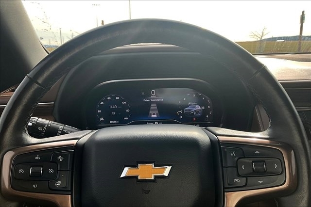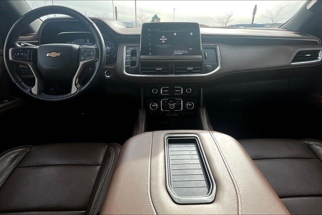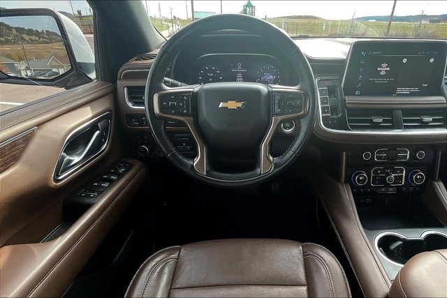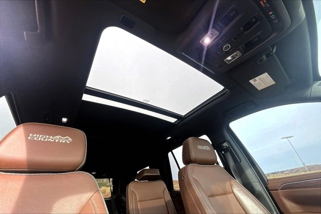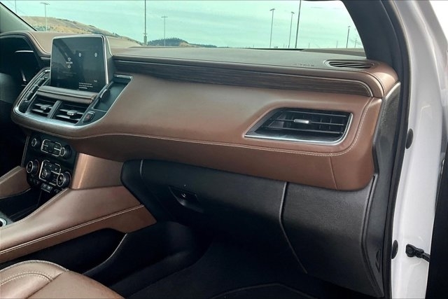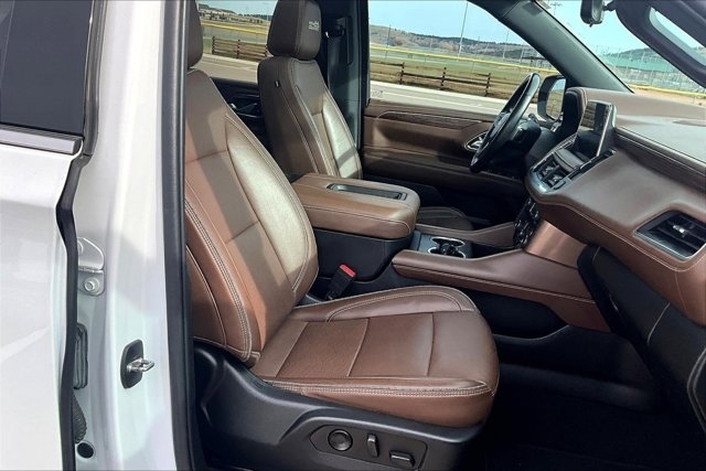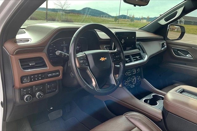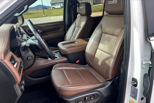 This 2022 Chevrolet Tahoe comes equipped with, Leather Seats, Sunroof/Moonroof, Navigation System, Backup Camera, Bluetooth, Apple CarPlay, Android Auto, No Accidents On Carfax, NonSmoker, Premium/ Alloy Wheels, 3rd Row Seats, Heated Seats, Automatic Headlights, Keyless Entry, Parking Sensors, Automatic Parking, Remote Engine Start, Blind Spot Monitor, Lane Departure Warning, Four Wheel Drive, Cooled Driver Seat, Cooled Passenger Seat, Heated Steering Wheel, Tahoe High Country, 4D Sport Utility, EcoTec3 6.2L V8, 10-Speed Automatic with Overdrive, 4WD, Summit White, Jet Black/Mocha Leather, 3.23 Rear Axle Ratio, Alloy wheels, Apple CarPlay/Android Auto, Auto-dimming door mirrors, Dual Exhaust System, Heated & Ventilated Driver & Front Passenger Seats, Set of 4 Wheel Locks (LPO), Ventilated front seats, Wheels: 22`` x 9`` Sterling Silver Premium Painted. 4WD 10-Speed Automatic with Overdrive EcoTec3 6.2L V8 Summit White