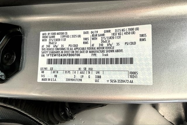 VIN | 1FTEW1E43KFB90706 |