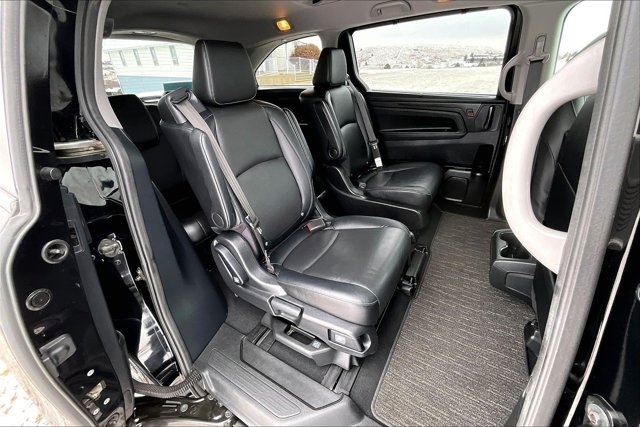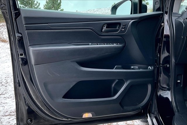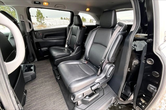 This 2023 Honda Odyssey comes equipped with, Leather Seats, Sunroof/Moonroof, Navigation System, Backup Camera, Bluetooth, Apple CarPlay, Android Auto, No Accidents On Carfax, NonSmoker, Roof Rack, Premium/ Alloy Wheels, 3rd Row Seats, Heated Seats, Automatic Headlights, Keyless Entry, Parking Sensors, Remote Engine Start, Quad Seating, Odyssey EX-L, 4D Passenger Van, 3.5L V6 SOHC i-VTEC 24V, 10-Speed Automatic, FWD, Black, Black w/Leather Seat Trim, Active Cruise Control, Adaptive Cruise Control: Adaptive Cruise Control (ACC) with Low-Speed Follow, Moonroof Visor, Power moonroof. FWD 10-Speed Automatic 3.5L V6 SOHC i-VTEC 24V Black