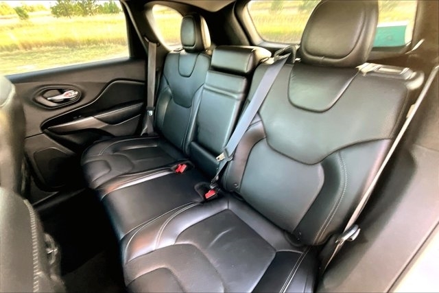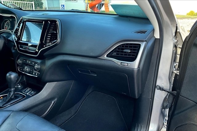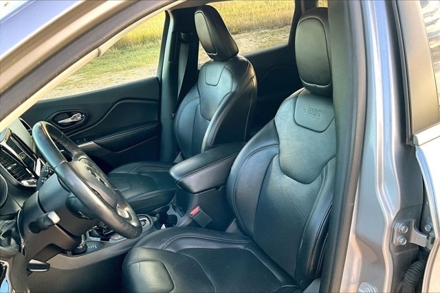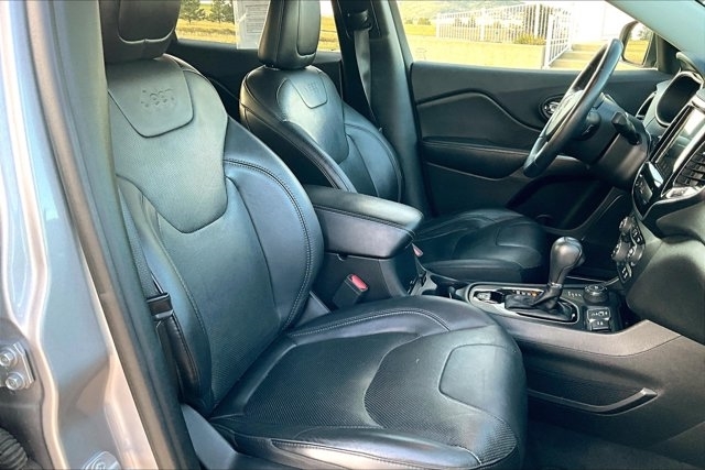 This 2019 Jeep Cherokee comes equipped with, Leather Seats, Navigation System, Backup Camera, Bluetooth, Apple CarPlay, Android Auto, No Accidents On Carfax, NonSmoker, Roof Rack, Premium/ Alloy Wheels, Heated Seats, Automatic Headlights, Keyless Entry, Parking Sensors, Remote Engine Start, Blind Spot Monitor, Four Wheel Drive, Heated Steering Wheel, Cherokee Limited, 4D Sport Utility, 3.2L V6, 9-Speed 948TE Automatic, 4WD, Billet Silver Metallic Clearcoat, Black Leather, Alloy wheels, Quick Order Package 26G, Wheels: 18`` x 7`` Polished/Painted Aluminum. 4WD 9-Speed 948TE Automatic 3.2L V6 Billet Silver Metallic Clearcoat