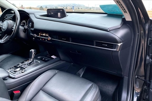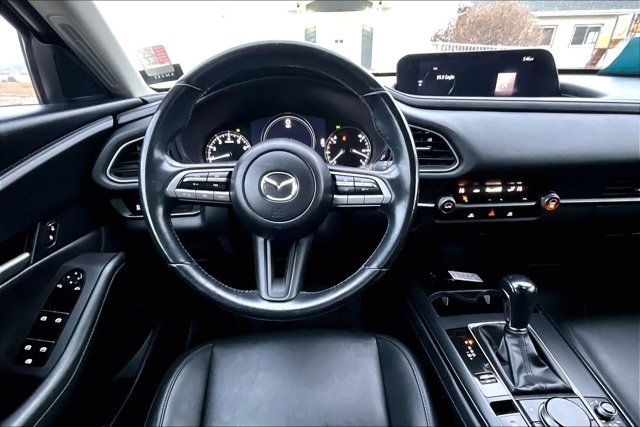 This 2021 Mazda CX-30 comes equipped with, Leather Seats, Navigation System, Backup Camera, Bluetooth, Apple CarPlay, Android Auto, Local Trade, NonSmoker, Roof Rack, Premium/ Alloy Wheels, Heated Seats, Automatic Headlights, Keyless Entry, Parking Sensors, Remote Engine Start, Blind Spot Monitor, Lane Departure Warning, Heated Steering Wheel, CX-30 Select, 4D Sport Utility, I4, 6-Speed Automatic, FWD, Jet Black Mica, Black Artificial Leather. FWD 6-Speed Automatic I4 Jet Black Mica