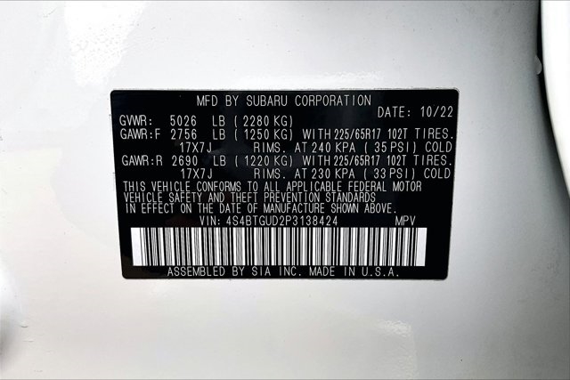 | VIN | 4S4BTGUD2P3138424 |