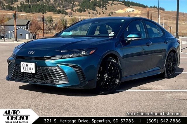 This 2025 Toyota Camry comes equipped with, Leather Seats, Backup Camera, Bluetooth, Apple CarPlay, Android Auto, No Accidents On Carfax, NonSmoker, Premium/ Alloy Wheels, Automatic Headlights, Keyless Entry, Blind Spot Monitor, Lane Departure Warning, Camry SE, 4D Sedan, 2.5L 4-Cylinder 16V DOHC, eCVT, FWD, Blue, Black w/Leather Seat Trim, Active Cruise Control, Alloy wheels, SofTex & Fabric Seat Trim, Speed control, Wheels: 18`` Black-Finished Alloy. FWD eCVT 2.5L 4-Cylinder 16V DOHC Blue