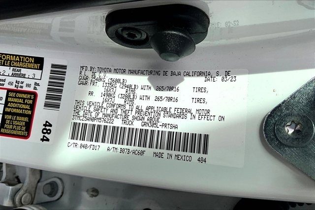 This 2023 Toyota Tacoma comes equipped with, Backup Camera, Bluetooth, Apple CarPlay, Android Auto, No Accidents On Carfax, NonSmoker, Premium/ Alloy Wheels, Automatic Headlights, Keyless Entry, Blind Spot Monitor, Lane Departure Warning, Four Wheel Drive, Tacoma TRD Offroad V6, 4D Double Cab, 3.5L V6, 6-Speed Automatic, 4WD, White, Cement w/Fabric Seat Trim or Fabric Seat Trim (FA), 120V/400W Deck Mounted AC Power, Active Cruise Control, Black Overfenders, Engine Immobilizer, Front Door Smart Key System w/Push Button Start, Power Sliding Rear Window w/Privacy Glass, Speed control, TRD Off Road Package. 4WD 6-Speed Automatic 3.5L V6 White