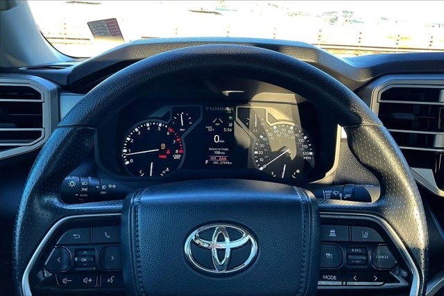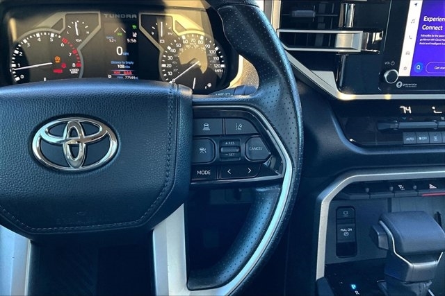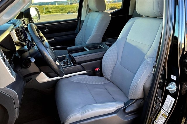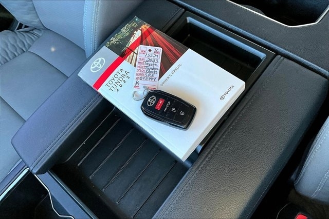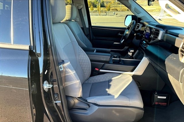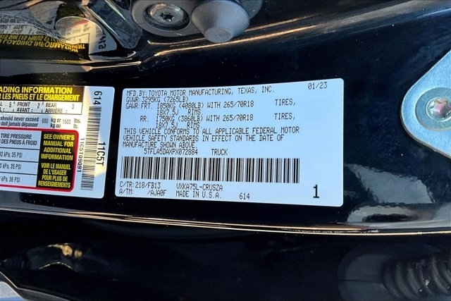 This 2023 Toyota Tundra comes equipped with, Navigation System, Backup Camera, Bluetooth, Apple CarPlay, Android Auto, No Accidents On Carfax, NonSmoker, Premium/ Alloy Wheels, Automatic Headlights, Keyless Entry, Parking Sensors, Lane Departure Warning, Four Wheel Drive, Tundra SR5, 4D Double Cab, 3.4L V6, 10-Speed Automatic, 4WD, Black, Black w/Fabric Seat Trim (FB) or SofTex Seat Trim or Fabric Seat Trim, 18`` Alloy Wheels, 32 Gallon Fuel Tank, Active Cruise Control, Advanced Technology Package, Alloy wheels, Blind Spot Monitor w/Lane Change Assist, Multi-Terrain Back Monitor, Parking Support Alert/Brake, Speed control, SR5 Convenience Package, Towing Package. 4WD 10-Speed Automatic 3.4L V6 Black