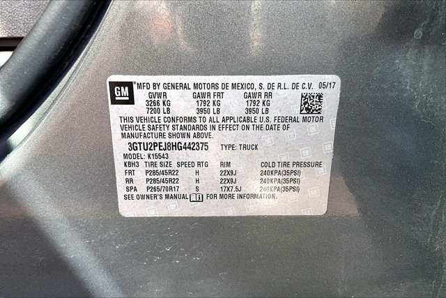 This 2017 GMC Sierra 1500 comes equipped with, Leather Seats, Sunroof/Moonroof, Navigation System, Backup Camera, Bluetooth, Apple CarPlay, Android Auto, No Accidents On Carfax, NonSmoker, Premium/ Alloy Wheels, Heated Seats, Automatic Headlights, Keyless Entry, Parking Sensors, Remote Engine Start, Blind Spot Monitor, Lane Departure Warning, Four Wheel Drive, Cooled Driver Seat, Cooled Passenger Seat, Heated Steering Wheel, Sierra 1500 Denali, 4D Crew Cab, EcoTec3 6.2L V8, 8-Speed Automatic with Overdrive, 4WD, Mineral Metallic, Cocoa/Dark Sand Leather, 110-Volt AC Power Outlet, 150 Amp Alternator, 1st & 2nd Row Color-Keyed Carpeted Floor Mats, 2-Speed Active Electronic AutoTrac Transfer Case, 6`` Rectangular Chromed Tubular Assist Steps, 8`` Multi-Color Customizable Driver Display, Alloy wheels, Auto-Dimming Inside Rear-View Mirror, Body Color Lower Front Bumper, Body Color Rear Bumper w/Cornersteps, Bose Speaker System, Chrome Bodyside Moldings, Chrome Door Handles, Chrome Mirror Caps, Chrome Recovery Hooks, Color-Keyed Carpeting, Deep-Tinted Glass, Denali Ultimate Package, Driver & Front Passenger Illuminated Vanity Mirrors, Dual-Zone Automatic Climate Control, Electric Rear-Window Defogger, Enhanced Driver Alert Package, EZ Lift & Lower Tailgate, Forward Collision Alert, Front Frame-Mounted Black Recovery Hooks, Heated & Ventilated Front Bucket Seats, Integrated Trailer Brake Controller, IntelliBeam Automatic High Beam On/Off Headlight, Lane Keep Assist, Leather Wrapped Heated Steering Wheel, Low Speed Forward Automatic Braking, Manual Tilt/Telescoping Steering Column, Navigation System, OnStar 3 Month Guidance Plan, OnStar w/4G LTE, Polished Exhaust Tip, Power Adjustable Pedals, Power Folding & Adjustable Heated Outside Mirrors, Power Sliding Rear Window w/Defogger, Power Sunroof, Power Windows w/Driver Express Up & Down, Preferred Equipment Group 5SA, Rear 60/40 Folding Bench Seat (Folds Up), Rear Vision Camera, Rear Wheelhouse Liners, Remote Keyless Entry, Remote Vehicle Starter System, Single Slot CD/MP3 Player, Steering Wheel Audio Controls, Theft Deterrent System (Unauthorized Entry), Thin Profile LED Fog Lamps, Trailering Equipment, Tri-Mode Power Steps, Ultrasonic Front & Rear Park Assist, Universal Home Remote, Wheels: 22`` Aluminum w/Premium Paint. 4WD 8-Speed Automatic with Overdrive EcoTec3 6.2L V8 Mineral Metallic
