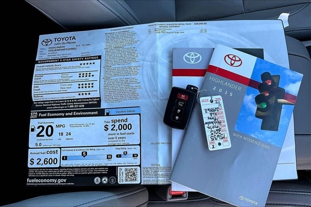This 2015 Toyota Highlander comes equipped with, Leather Seats, Sunroof/Moonroof, Navigation System, Backup Camera, Bluetooth, Apple CarPlay, Android Auto, No Accidents On Carfax, Local Trade, NonSmoker, Roof Rack, Premium/ Alloy Wheels, 3rd Row Seats, Heated Seats, Automatic Headlights, Keyless Entry, Parking Sensors, All Wheel Drive, Highlander XLE V6, 4D Sport Utility, 3.5L V6 DOHC Dual VVT-i 24V, 6-Speed Automatic Electronic with Overdrive, AWD, Beige, Ash w/Leather Seat Material, Exterior Parking Camera Rear, Navigation System, Power moonroof. AWD 6-Speed Automatic Electronic with Overdrive 3.5L V6 DOHC Dual VVT-i 24V Beige